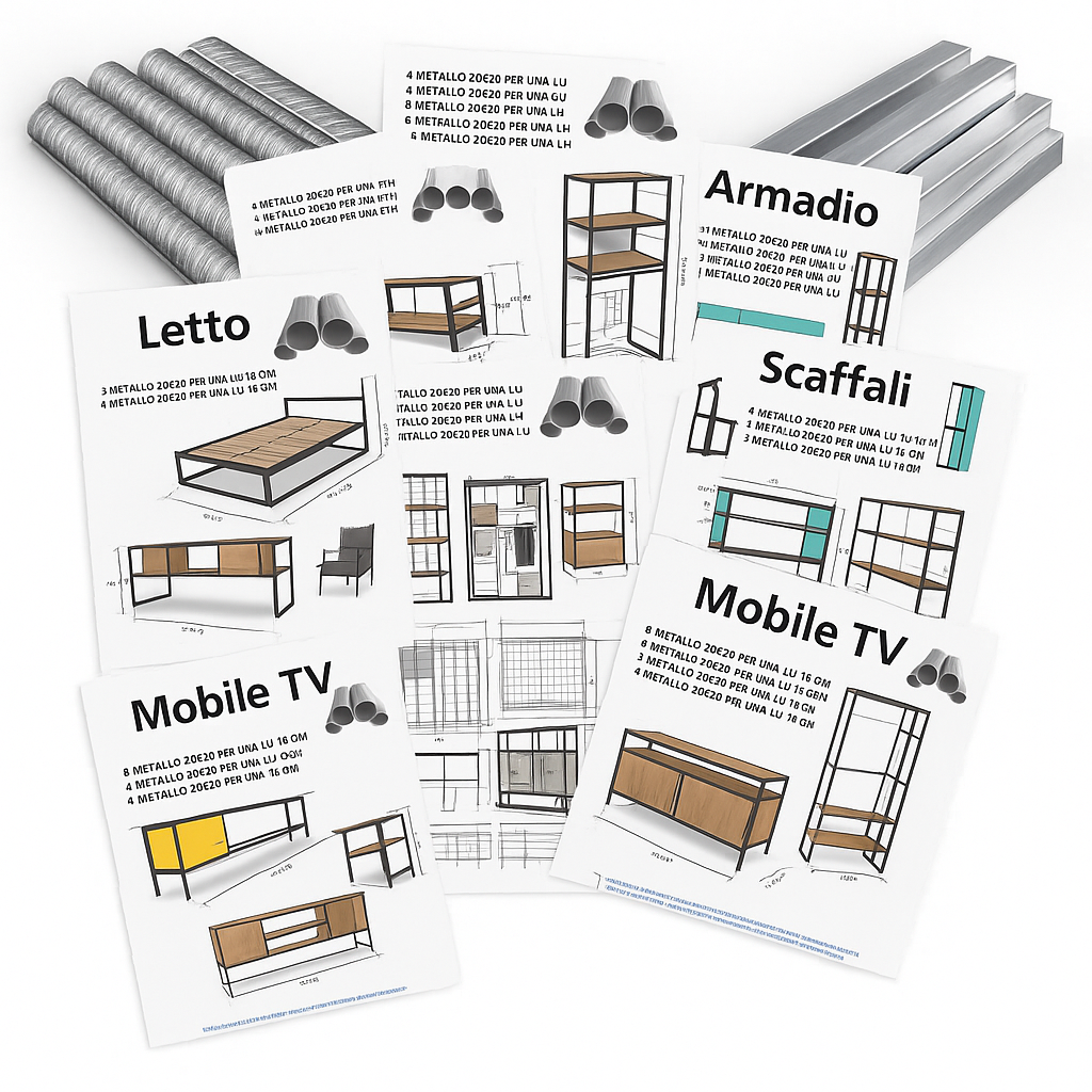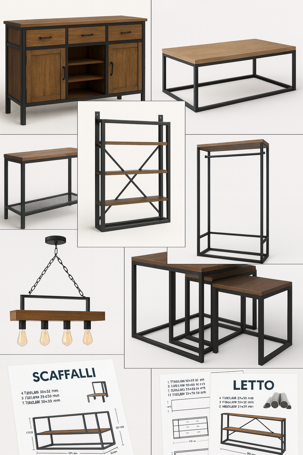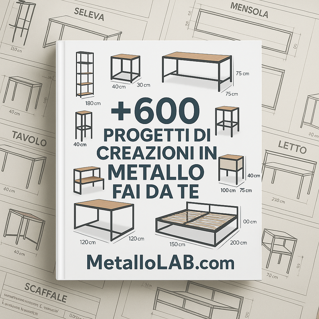 Dai vita alle tue idee con MetalloLAB, la raccolta più completa dedicata al mondo del fai da te in metallo. All’interno troverai oltre 600 progetti professionali, ognuno corredato da disegni tecnici dettagliati, misure in centimetri e istruzioni chiare per costruire mobili solidi, funzionali ed esteticamente impeccabili. Potrai realizzare tavoli da pranzo, scaffali industriali, panche, letti, mensole, sedie e armadi pensili, tutti pensati per combinare design moderno e robustezza artigianale.